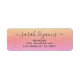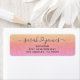 Elegante conectado por nomes de casais de endereços de retorno de família amorosa com nomes de script cursivos conectados no meio por um coração suave. Acompanhado do nome e endereço da família impressos. Gradiente romântico por pôr do sol feito de tons cor laranja, vermelha e rosa com uma textura impressa no estilo burlap. Adoráveis etiquetas de endereços de retorno para recém-casados e todos os outros casais que estão fortemente ligados pelo amor.