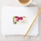 Um floral brilhante e ousado de rosas em tons de burgundy e creme é o ponto focal de muitas das peças deste suite de casamento que também contém textos elegantes e layouts modernos de design. A etiqueta de endereço de casamento mostrada aqui tem uma borda de canto de rosas e espaço para seu novo sobrenome. Insira facilmente seus nomes e detalhes de endereço usando o modelo fornecido. Procure ID584 para ver todas as peças correspondentes neste belo conjunto de casamento.