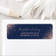 Esta elegante e moderna etiqueta de endereço de retorno de casamento contém um rosa dourado faux glitter design, organizado diagonalmente em dois cantos. O texto personalizável combina a letra rosa-rosa pálida e as fontes em um fundo azul-marinho.