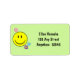 Etiqueta de endereço verde-claro de 2"l x 3,75"w com imagem de uma face feliz amarela brilhante, um ícone de 70 para ter certeza e três flores brancas. Ver confete correspondente, bolsa de favor, etiqueta de favor, adesivo redondo e papel de embrulho. Veja toda a coleção de Rótulos Disco 70s nos CONVITES | Seção Stickers & Labels