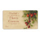 Ilustração de cerejas vermelhas escuras em um galho com folhas verdes, sobre fundo bege com texto cor russet, feita a partir de uma pintura de vintage de Catharina ou Catherine Klein, nascer 1861. O rótulo é criado para enlatar ou engarrafar casas de doces, geleias e conservas. Você pode deixar o espaço de data para escrever ou mudar para a data em que seu emperramento ou gelatina foi feito.
