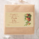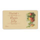 Ilustração de cinco maçãs maduras vermelhas e amarelas em um galho com folhas verdes, sobre fundo bege com texto cor russa, de uma pintura de safra de Catharina ou Catherine Klein, nascer 1861. O rótulo é criado para enlatar ou engarrafar casas de doces, geleias e conservas. Você pode deixar o espaço de data para escrever ou mudar para a data em que seu emperramento ou gelatina foi feito.