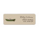 Um rótulo de endereço com uma ilustração de uma canoa verde. Personalize o texto com seu nome e endereço.