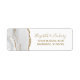 A borda esquerda desta elegante e moderna etiqueta de endereço de retorno de convite de casamento apresenta uma cinza e uma borda branca com uma falso brilho dourado. O texto personalizável combina letras douradas e fontes de impressão em um fundo branco.