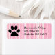 Rótulo de Endereço de Retorno de Impressão de Cão ou de Pata de Gato Rosa Personalizado