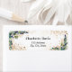 Folhagem de eucalipto e folhagem dourada falsa. Decorado com pó brilhante falso. Personalize e adicione seu nome e endereço. Letras pretas.