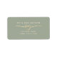Simples, minimalista, caligrafia moderna, rótulo de endereço de devolução de casamento verde escuro contemporâneo com coração de corda dourada.