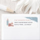 Um design de volta aconchegante para o endereço de feriado com vibrantes vibrações, com uma cena de Natal nevada. Personalize com seu nome e endereço da família.