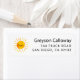 Rótulo de endereço de retorno com uma ilustração de aquarela de um sol sorridente amarelo. Você pode usar isso para cartões temáticos de aniversário ou chá de fraldas.