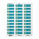 As pranchetas retornam etiquetas de endereço com modelos de texto personalizados. Adicione texto em três ou quatro linhas impressas sobre cor azul lacrimogênea. Três pranchas decoradas sentam-se na areia da praia, na borda esquerda das etiquetas magras.