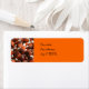 Etiquetas de endereços tematizadas do Halloween com uma foto próxima de milho doce com fundo laranja. A cor de fundo, a fonte e o texto são todos personalizáveis.