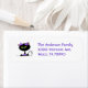 Etiqueta doce feita em branco, com gráficos adoráveis de um gato preto, com um grande arco roxo, na cabeça dele. O texto do endereço de retorno, em roxo, é totalmente personalizável para atender às suas necessidades. Excelente para cada dia de utilização ou em ocasiões especiais.