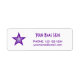 Design moderno com uma estrela roxa e branca "brilhante" sobre fundo branco. Etiqueta de endereço com um design personalizável para personalizar com seu próprio texto, imagens e ideias. Note que esta é uma imagem impressa criada usando fotografias originais e técnicas digitais, que ela não brilha ou contém faíscas reais.