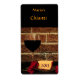 Esta deliciosa garrafa de vinho apresenta uma imagem simples de um copo de vinho tinto escuro, uma placa de queijo e flores vermelhas contra uma parede rústica de tijolos de laranja. Todo o texto pode ser personalizado com suas informações especiais.