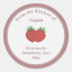 Um adesivo Rótulo de Morango rústico sobre fundo branco redondo e com uma comitiva de coroa cor-de-rosa, uma ilustração de 2 morangos completa tudo. Perfeito para partilhar ou vender as suas receitas como compota, torta, xarope, sumo, latas, marmelada, migalhas, etc.