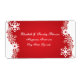 Etiqueta de casamento no inverno branco vermelho Snowflake, com borda branca de flocos de neve sobre fundo vermelho brilhante. Uma escolha perfeita para o inverno de dezembro ou casamentos de Natal.