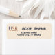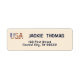 USA Flag Address Labels - Vintage Word USA with Flag Colors and Hearts Mostra seu espírito patriótico com nossas etiquetas de endereço de retorno que contêm um fundo branco adornado com a palavra "USA" em cores inspiradas na safra da bandeira americana. Perfeito para qualquer correspondência.