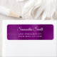 Etiquetas de endereço de retorno de luxo para seus cartões de agradecimento depois de sua comemoração de aniversário. A cor branca neste script elegante nesses rótulos de endereço de retorno pode ser alterada. Uma caligrafia elegante clássica emparelhada com uma fonte serif de todos os bonés. A aparência falso de metal roxo e escovado é criada com arte digital que impressão como uma foto.