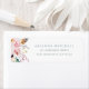 Esta tendência e os rótulos de endereços rústicos incluem um buquê cheio de flores e penas aquáticas.