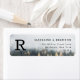 Árvores de Pinheiros de Montanha Rústica Querem Design da Floresta com imagem de fotografia suave e fraca. Uma paisagem russa ao ar livre para um abrigo aventureiro, montanha, casamento de retirada, em verde escuro, cinza, ouro e branco. - Etiquetas de Endereço de Devolução de Casamento! ~ Cheque meu compro para ver a suíte inteira para este design!