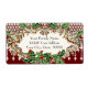 COR PALETA: Vermelho, verde e ouro com COLEÇÃO DESIGN de nata: Esses rótulos podem ser usados para retornar aos seus cartões de Natal ou se você apagar o texto, poderá impressão seus próprios endereços nos rótulos do vazio. O padrão de fundo é um impressão vermelho-impermeável, pintado manualmente, com folhas e bagas ocas espalhadas ao redor da gravura de ornamento de uma impressora de safra que foi graficamente transformada em uma fita e arco espiralada de metal falso, com aspecto tridimensional. Clássico, tradicional decoração de Natal para suas necessidades de empacotamento e papelaria.