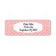 Essas etiquetas de endereço de retorno têm um design de Art Deco de linhas curvas de salmão em forma de triângulo em um campo de branco repetido na design.