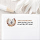 O lado esquerdo destas etiquetas de endereço de retorno apresenta um retrato de um lindo cão Samoyed branco. A imagem é fechada dentro de uma bonito coroa floral e foliar de outono em tons de marrom, bronzeado e creme. Seu texto personalizado está em preto e marrom-ouro à direita.