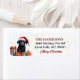 O lado esquerdo destas etiquetas de endereço de retorno de Feriado divertido apresenta uma imagem de um adorável Labrador preto vestindo um chapéu de Papai Noel vermelho e branco. Ele senta-se ao lado de pacotes de presentes envoltos. Seu texto personalizado está em vermelho e preto à direita. Um sutil fundo de confete de ouro dá um pouco de brilho de Natal. Certifique-se de ver o sorteio de presentes temerários para cães e necessidades de Feriados em nossa loja.