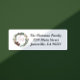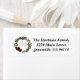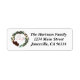 Flores brancas pintadas à mão, ramos de morango vermelho, hálito de bebê, ramos de pinheiro e cones de pínus com serifa vermelha e Feliz de script e etiquetas de endereço de retorno Brilhante.