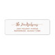 Estas etiquetas de endereço de volta de Natal modernas e na moda indicam o nome da sua família no roteiro festivo boho terracotta e texto em um simples fundo branco.