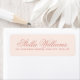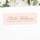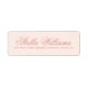 Etiquetas de endereço de retorno elegantes com seu nome em uma fonte elegante de script de caligrafia e o endereço abaixo em um plano de fundo rosa-claro e-claro.