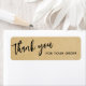Obrigado por seu pedido de etiquetas de empacotamento de produtos e adesivos com script manual moderno em um fundo de textura marrom rústico de papel Kraft. Personalize o slogan com seu próprio texto, nome comercial ou endereço da Web.