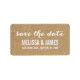 Boige Rustic Burlap Script Wedding Salve o Rótulo de Endereço de Data. Design por Elke Clarke© para MonographicGallery, impressa por Zazzle. Envie suas cartões salve a data para seus amigos e familiares usando esta maravilhosa e simples etiqueta com as palavras "salvar a data" escrita em uma cobertura de texto de tipografia escrevendo de mão branca. Efeito fotográfico impresso do fundo da burlap bege. Outras cores disponíveis.
