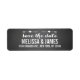 Casamento de Script de Quadro Russo Salve a Etiqueta de Endereço de Retorno de Data. Design por Elke Clarke© para MonographicGallery, impressa por Zazzle. Envie suas cartões salve a data para seus amigos e familiares usando esta maravilhosa e simples etiqueta com as palavras "salvar a data" escrita em uma cobertura de texto de tipografia escrevendo de mão branca com duas setas com corações através delas. Efeito fotográfico impresso do fundo preto do quadro negro. Outras cores disponíveis.