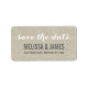 Boige Rustic Linen Script Wedding Salve o Rótulo de Endereço de Data. Design por Elke Clarke© para MonographicGallery, impressa por Zazzle. Envie suas cartões salve a data para seus amigos e familiares usando esta maravilhosa e simples etiqueta com as palavras "salvar a data" escrita em uma cobertura de texto de tipografia escrevendo de mão branca. Efeito fotográfico impresso do fundo da roupa bege. Outras cores disponíveis.