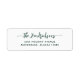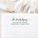 Estas etiquetas de endereço de ida e volta de feriado modernas e na moda apresentam o nome da sua família no festivo roteiro verde de Natal e texto num fundo branco simples.