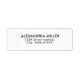 Esta etiqueta de endereço de retorno simples e moderna apresenta uma fonte preta sobre um fundo branco limpo, perfeita para adicionar um toque profissional ao correio enviado. Personalize com seu nome e endereço.
