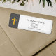 Um adesivo de etiqueta de endereço de retorno simples e elegante, incluindo um fundo preto à esquerda com uma cruz dourada. Uma maneira muito sóbria de se comunicar para um pastor, uma igreja, uma comunidade cristã, ou apenas uma família.