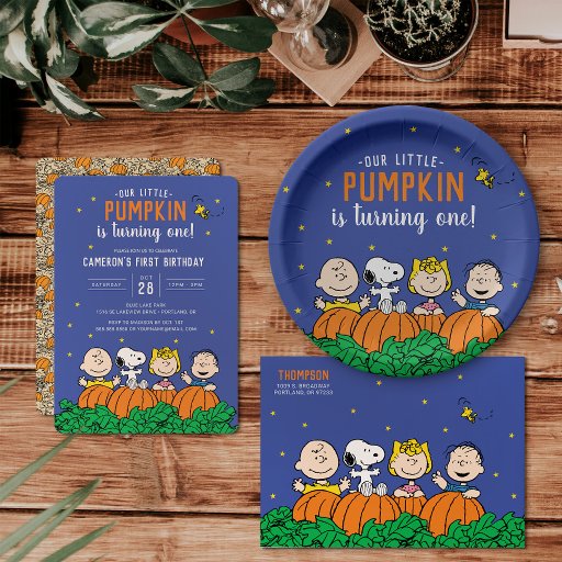 Etiqueta Snoopy e Pumpkin Primeiro Aniversário
