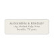 Essas etiquetas de endereço de devolução apresentam um layout minimalista e limpo com texto centralizado em um fundo claro, criando uma aparência elegante e sem bagunça. O design utiliza uma paleta de cores cinza neutro suave para o texto contra um fundo branco ou marfim, melhorando a legibilidade e mantendo um tom sofisticado. A tipografia desempenha um papel central, com fontes serifadas em negrito para nomes e fontes sans-serif mais leves para endereços, oferecendo uma estética moderna e atemporal. Perfeitas para quem aprecia simplicidade e clareza, essas etiquetas transmitem uma sensação de profissionalismo e refinamento.