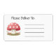 Etiqueta de endereço de cogumelo sorridente, vermelho e branco, "Por favor, entregar para".