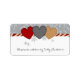 Corações de fios de corte, com textura de suéter, em vermelho, cinza e cor de flanela bronzeada, no Natal "feito à mão com amor" a/dos autocolantes por dar a sua lista com tricô e projetos de crochê. Listras de cana-de-açúcar doces e fundo de cinza doce.