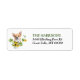 O lado esquerdo dessas etiquetas de endereço de retorno apresenta uma imagem aquosa de um adorável cão Chihuahua, marrom e branco, entre girassóis espalhados e folhas de eucalipto. Seu texto personalizado está em cinzas verdes e escuras à direita.