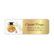 Elegante rótulo de endereço de retorno de graduação em dourado com tampa de graduação, bola de discoteca e garrafa de vinho.
