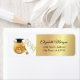 Elegante etiqueta de endereço de retorno de graduação em ouro com tampa de graduação, bola de discoteca e garrafa de vinho.