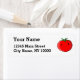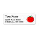 Um tomate vermelho bonito estilo cartoon. Etiquetas de endereço personalizadas design desenhado à mão. Editar texto para personalizar. Dar uma ideia para pessoas de todas as idades que amam tomates e legumes fofos.