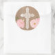 uma etiqueta bonito perfeita para baptismos e batismo. Caracteriza uma cruz branca e uns detalhes cor-de-rosa da flor da aguarela.