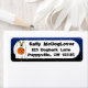 Um adorável cão de desenho animado está vestido como um fantasma nestas ótimas etiquetas de endereços de Halloween! O pãozinho tem um truque de jack-o-lanterna ou balde de tratamento na boca, tudo pronto para coletar alguns doces. Etiquetas de endereço de Halloween únicas para amantes de cães.