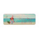 Gnomo com pinheiro no trenó e flocos de neve no fundo da praia. Um design elegante e sofisticado. Personalize com o seu nome e endereço.