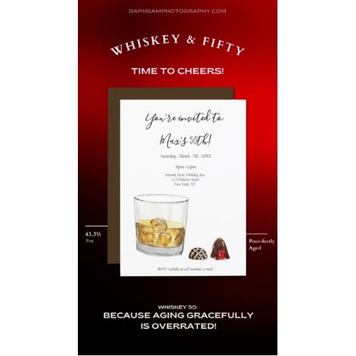 Esta aquarela branca com um copo de uísque encantador e chocolates elegantes, adiciona um toque de magia aos seus envelopes de 50 anos ou para o seu correio diário.
